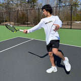 Do you live an active lifestyle? Cruise your way to success with ultimate versatility. This men’s plain white long sleeve shirt provides great comfort whether you’re on or off the court. It moistures sweat quickly through the fabric for fast evaporation providing amazing comfort.