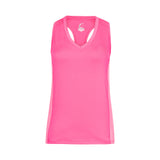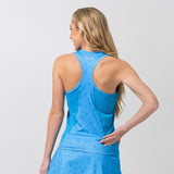 This sporty chic tank top features ultra soft patterned performance fabric with UPF 50+ sun protection. It features a v-neck and racer back design with slimming and stylish mesh side panels. Look good, play better!