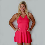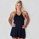 As you cruise onto the court, all eyes on you as this dress hugs your curves beautifully while the flared bottom sways with every step you take. The flexibility of the shirt allows breezy movement and the plunging V-neck line keep you confidence thriving on and off the court.