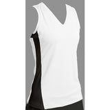 Energize your wardrobe with this exceptional moisture management tank top! This V-neck tank top is featured with slimming side stripe to create a flattering silhouette.
